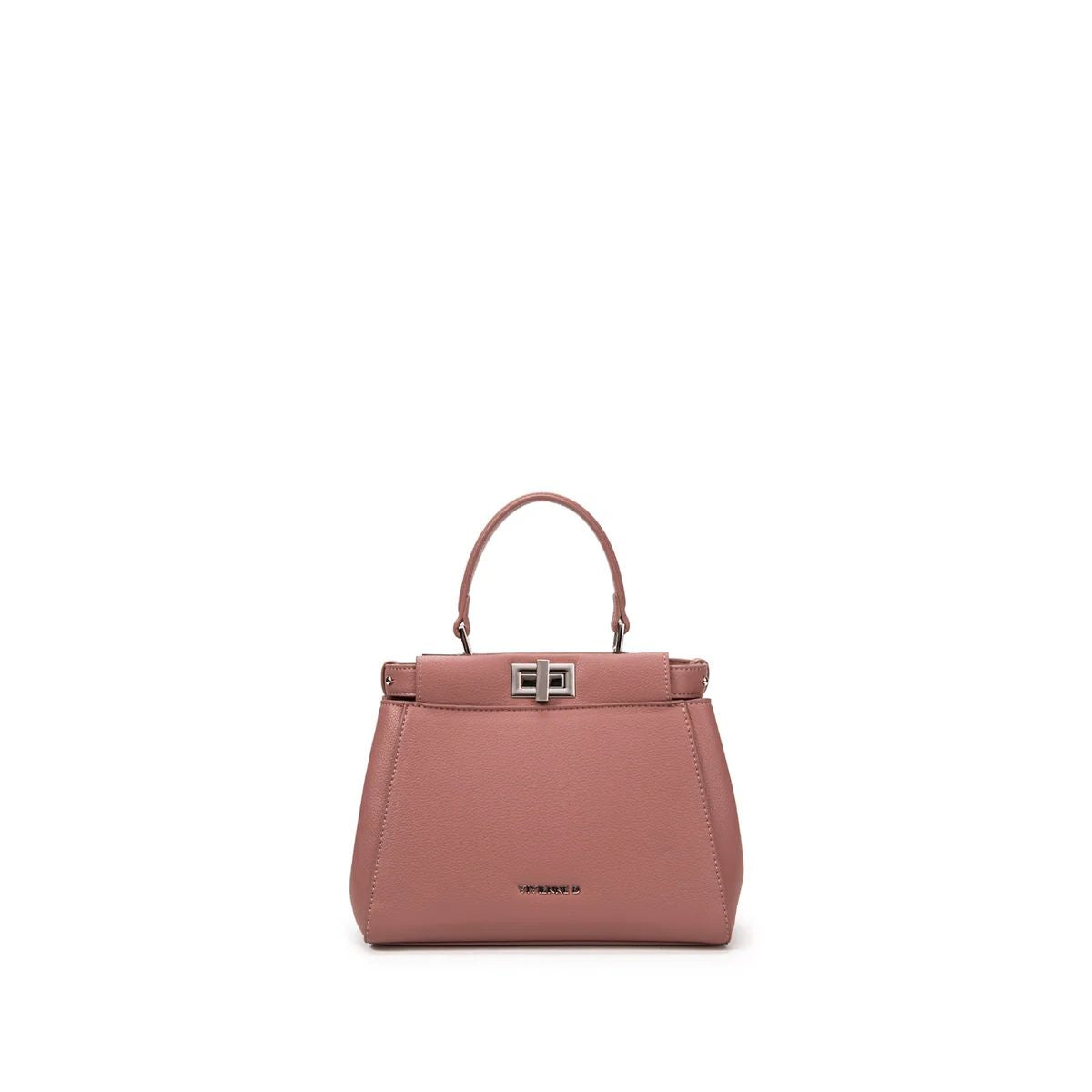 Mini bag in ecopelle martellata, due tasche interne di cui una con zip, logo VIVIENNE D finitura argentata. Chiusura con perni girevoli. Manico singolo, e tracolla in ecopelle.