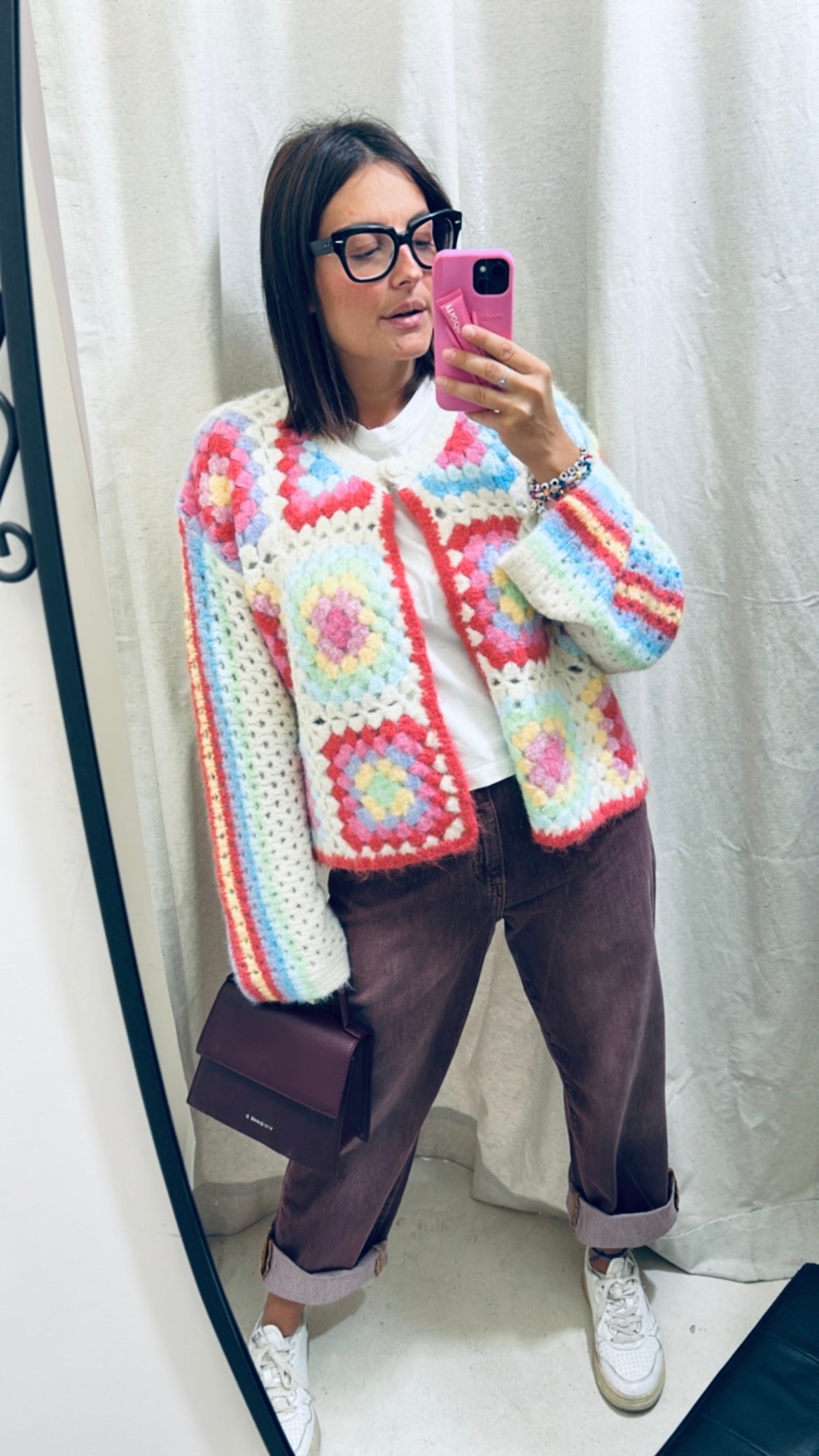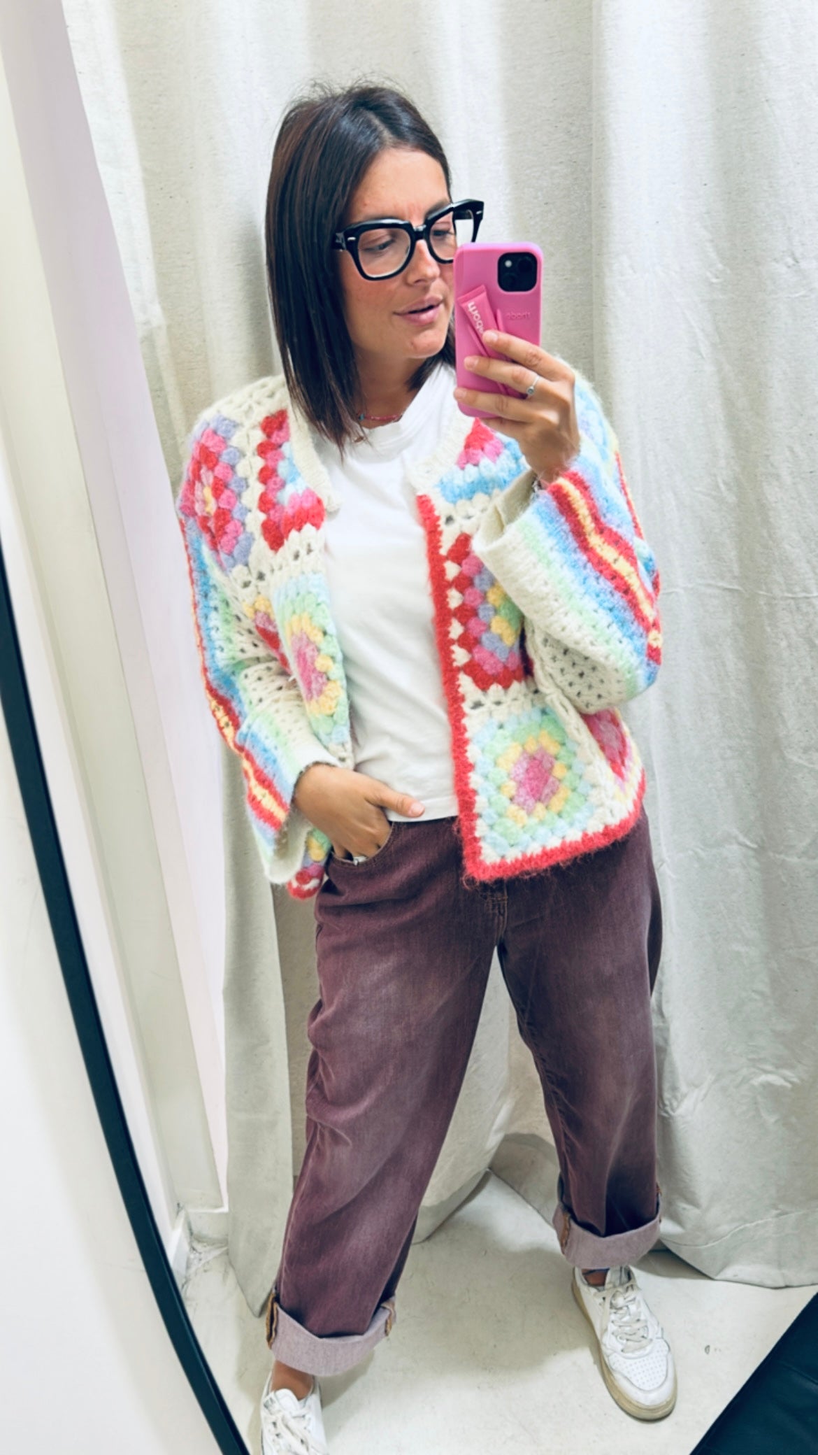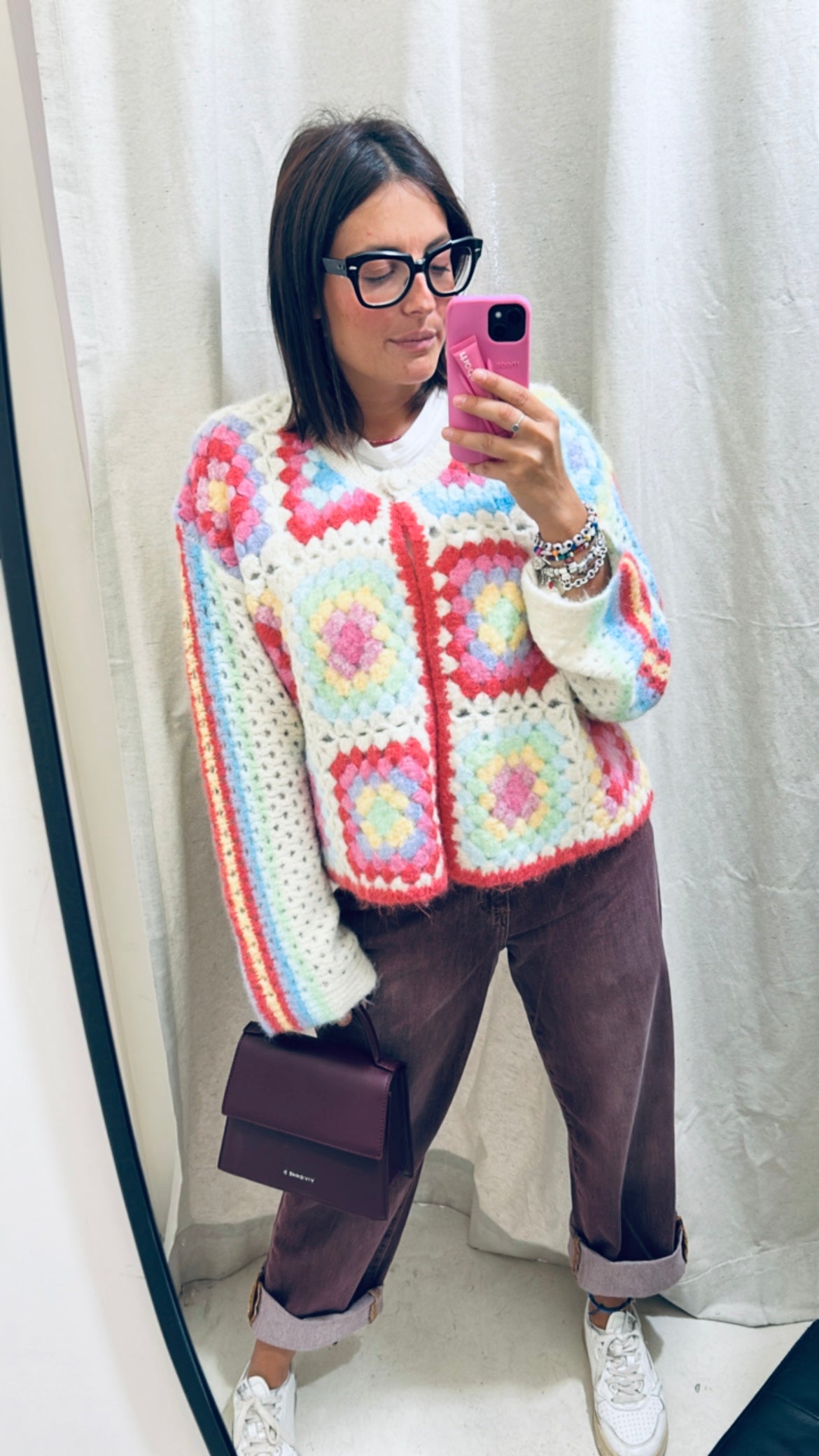 Golf macramè colorato con un bottone. Taglia unica
